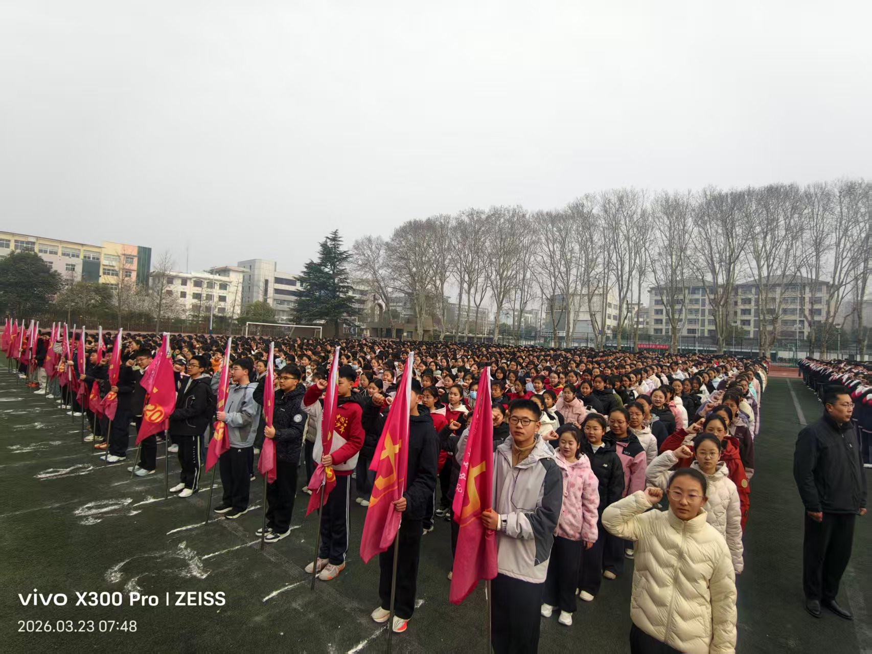 为进一步净化校园环境,培育优良校风学风,引导全体学生养成文明行为习惯,提升校园文明程度,3 月 23日,新沂市钟吾中学举行 “向陋习宣战 与文明同行” 校园不文明行为专项治理活动的启动仪式。全校师生参加仪式,仪式在庄严的升旗仪式中拉开帷幕。
